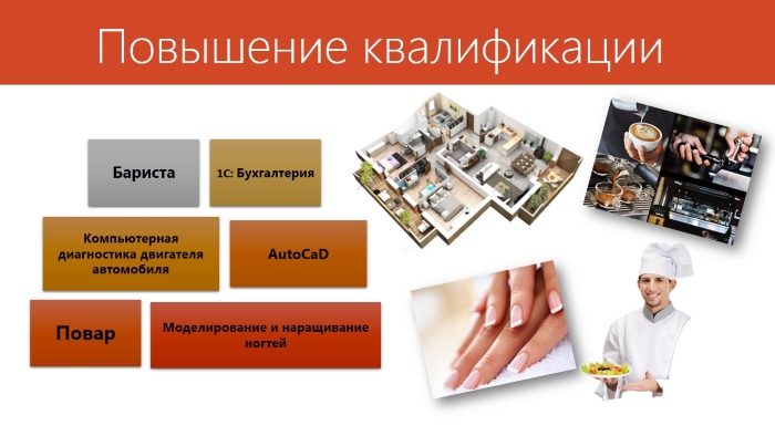 Дополнительные рабочие профессии и компетенции значительно увеличивают шансы трудоустройства или временной занятости. Высокое качество подготовки на курсах дополнительного образования помогает нашим студентам и выпускникам курсов уверенно чувствовать себя на рынке труда, в любой сложной ситуации найти возможность трудоустроится, реализовать свои планы.