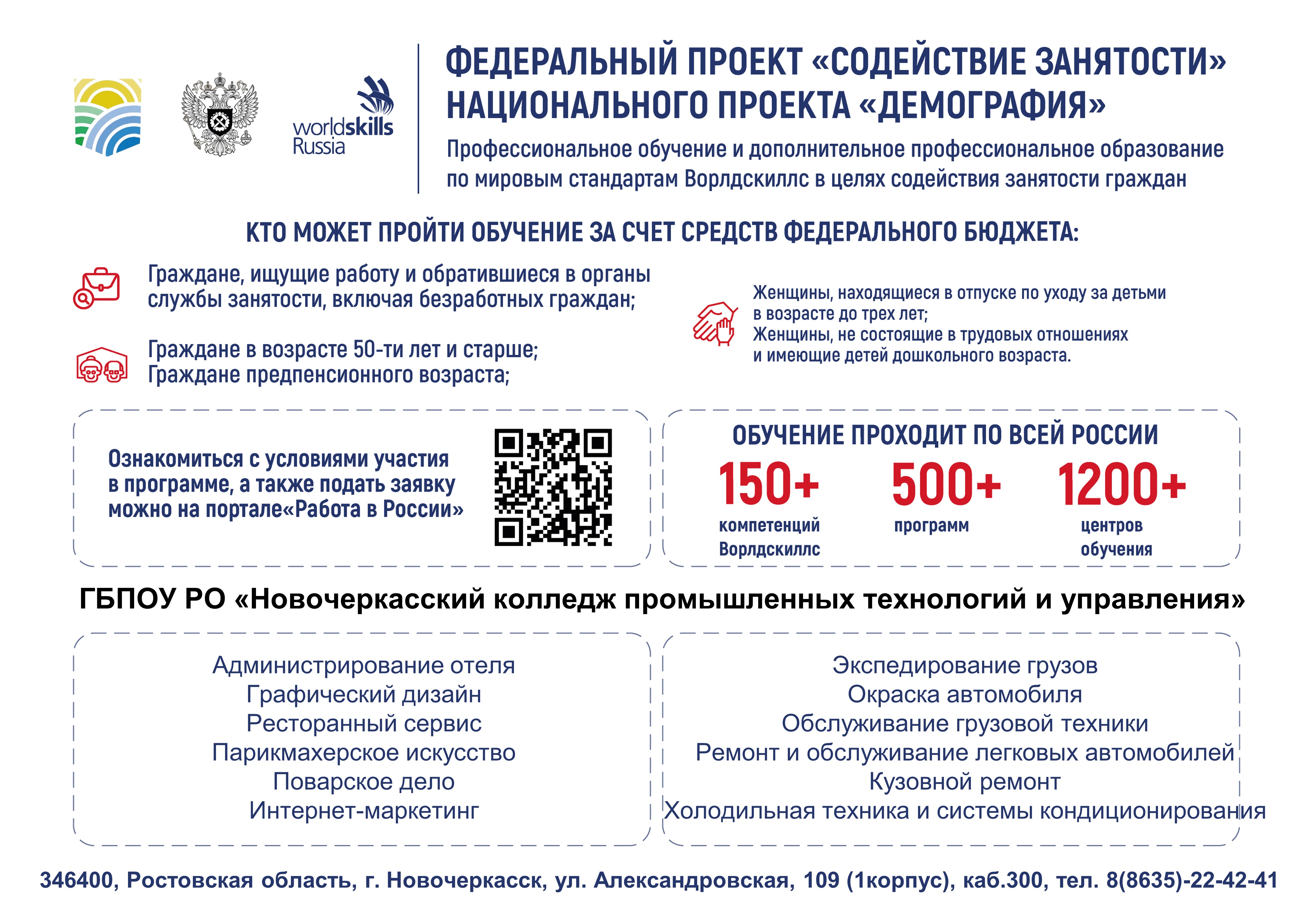 Федеральный проект "Содействие занятости" национального проекта "Демография"