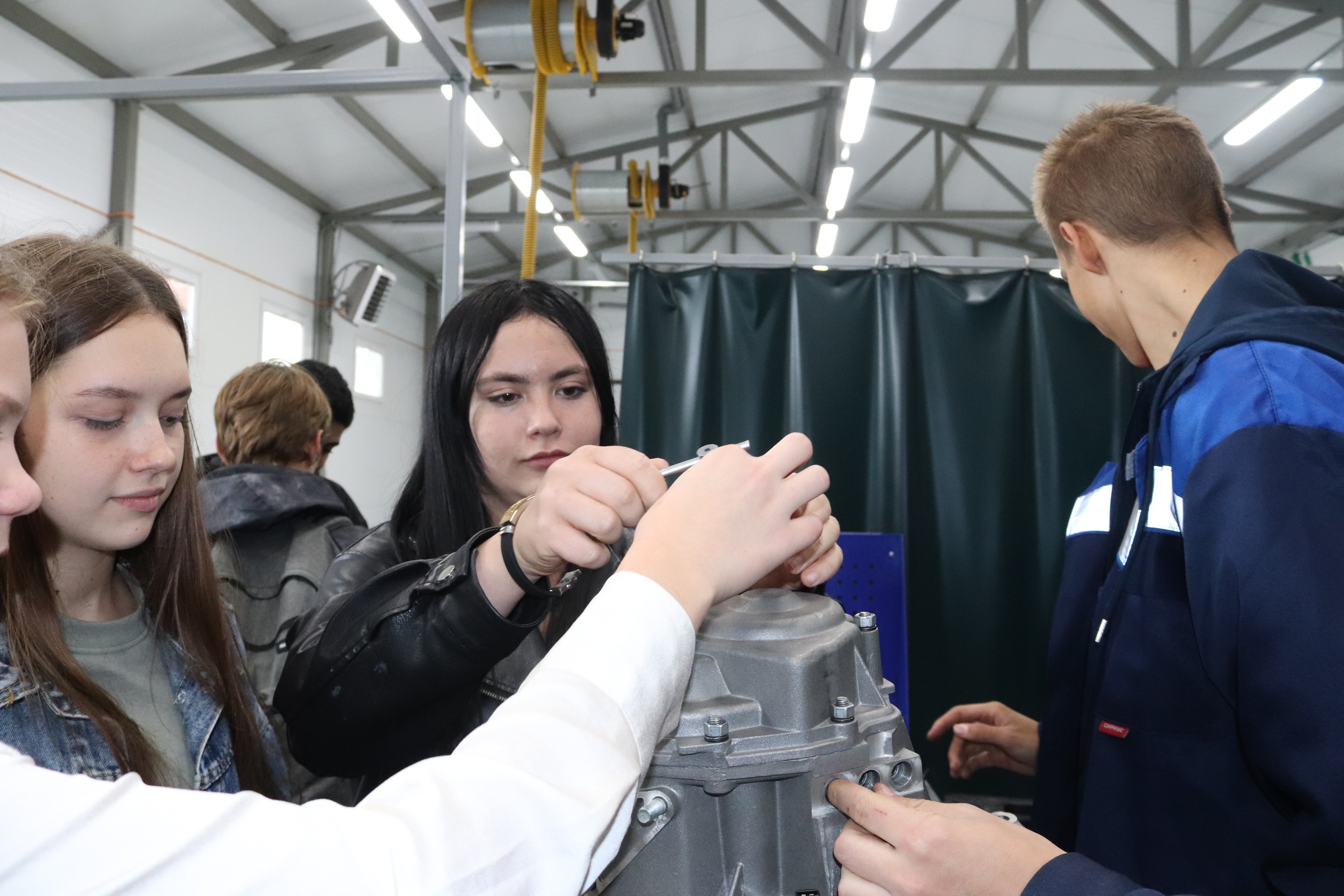 Здесь показывают и рассказывают не преподаватели, а студенты – всего на несколько лет старше пришедших в автомастерские НКПТиУ школьников. Ничего удивительного: это же профпробы, один из самых эффективных форматов профессиональной ориентации, способствующий погружению в профессию и осознанному выбору будущей специальности.