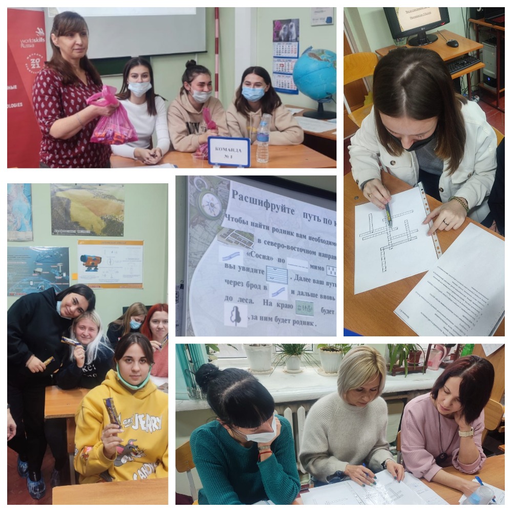 Участники – команда «Теодолит» и команда «Земство». В жюри - завотделением Наталья Юдина и преподаватели общеобразовательных дисциплин и профессиональных модулей Уни Крымцева, Наталья Казачкова и Юлия Чумакова.