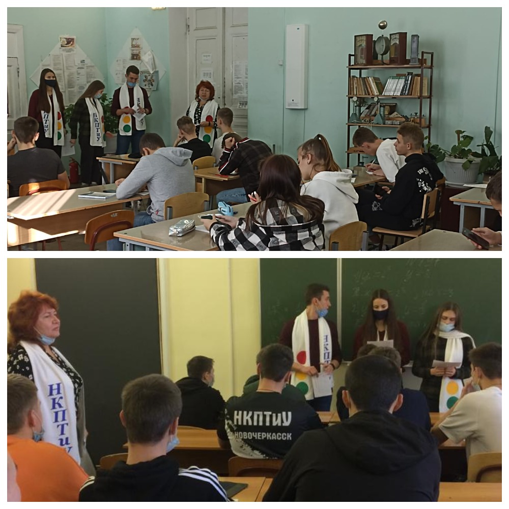 Члены агитбригады «Дорожный патруль» дали советы студентам колледжа, в виде викторины проверили знания обязанностей пешеходов, пожелали безопасных дорог и взаимопонимания участников дорожного движения.