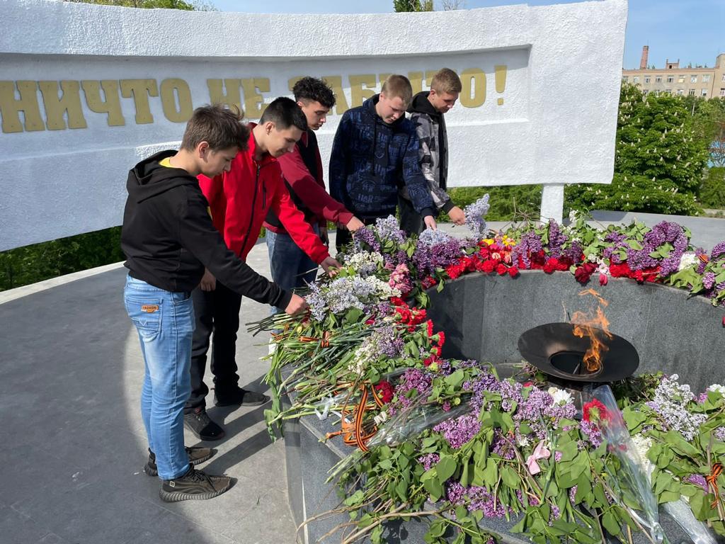 Накануне праздника студенты, проживающие в общежитии №1 НКПТиУ, совместно с воспитателем Петросян А.А. возложили цветы к Вечному огню, отдавая дань памяти погибшим на полях сражений, умершим от ран в мирное время.