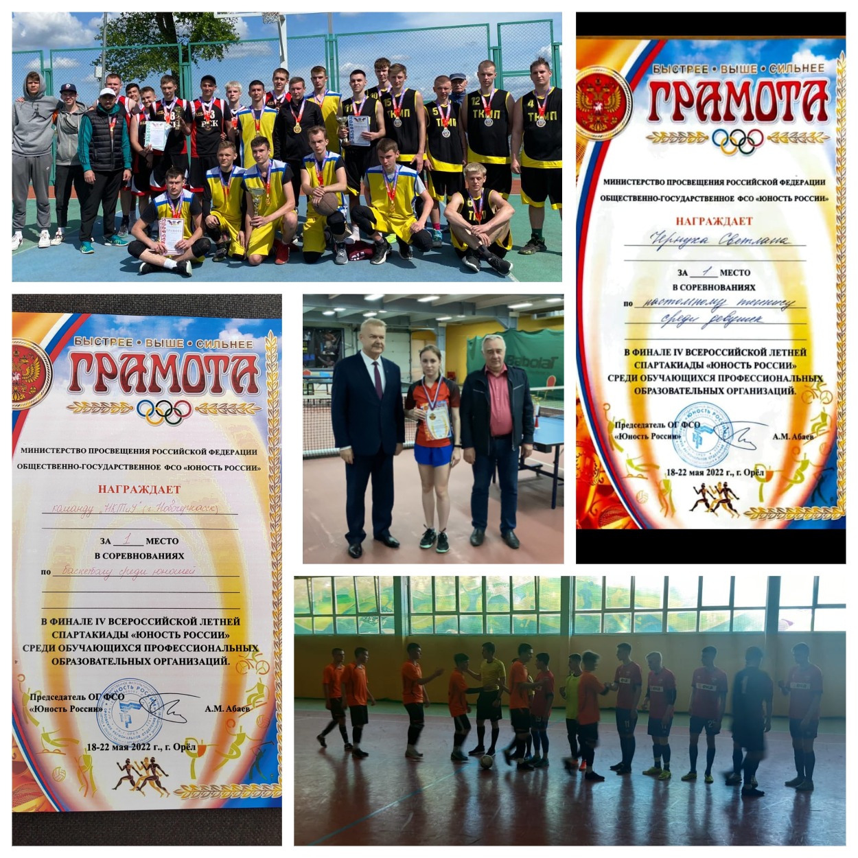 Спортсмены НКПТиУ победили сразу в двух видах IV Всероссийской летней Спартакиады «Юность России» среди обучающихся профессиональных образовательных организаций, которая проходила с 18 по 22 мая в Орле.