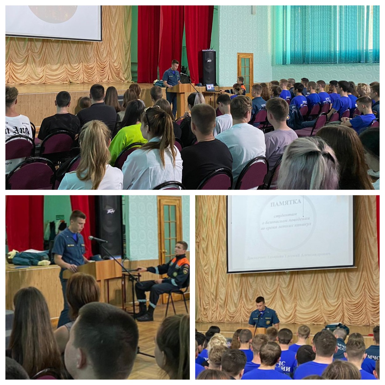 Цель - популяризация культуры безопасности в летний период среди молодёжи. Преподаватель Евгений Татаркин напомнил, что значит «безопасный отдых» - от правил поведения в природной среде, в том числе водных объектах, до действий при возникновении (или угрозе возникновения) ЧС природного и техногенного характера в местах массового пребывания людей.
