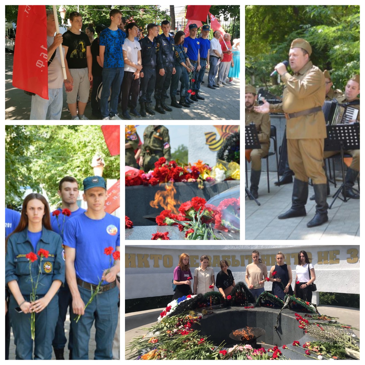 Также студенты колледжа приняли участие в траурном митинге у Кургана Славы в Александровском парке. Они возложили цветы к вечному огню и почтили минутой молчания память героев и жертв войны.