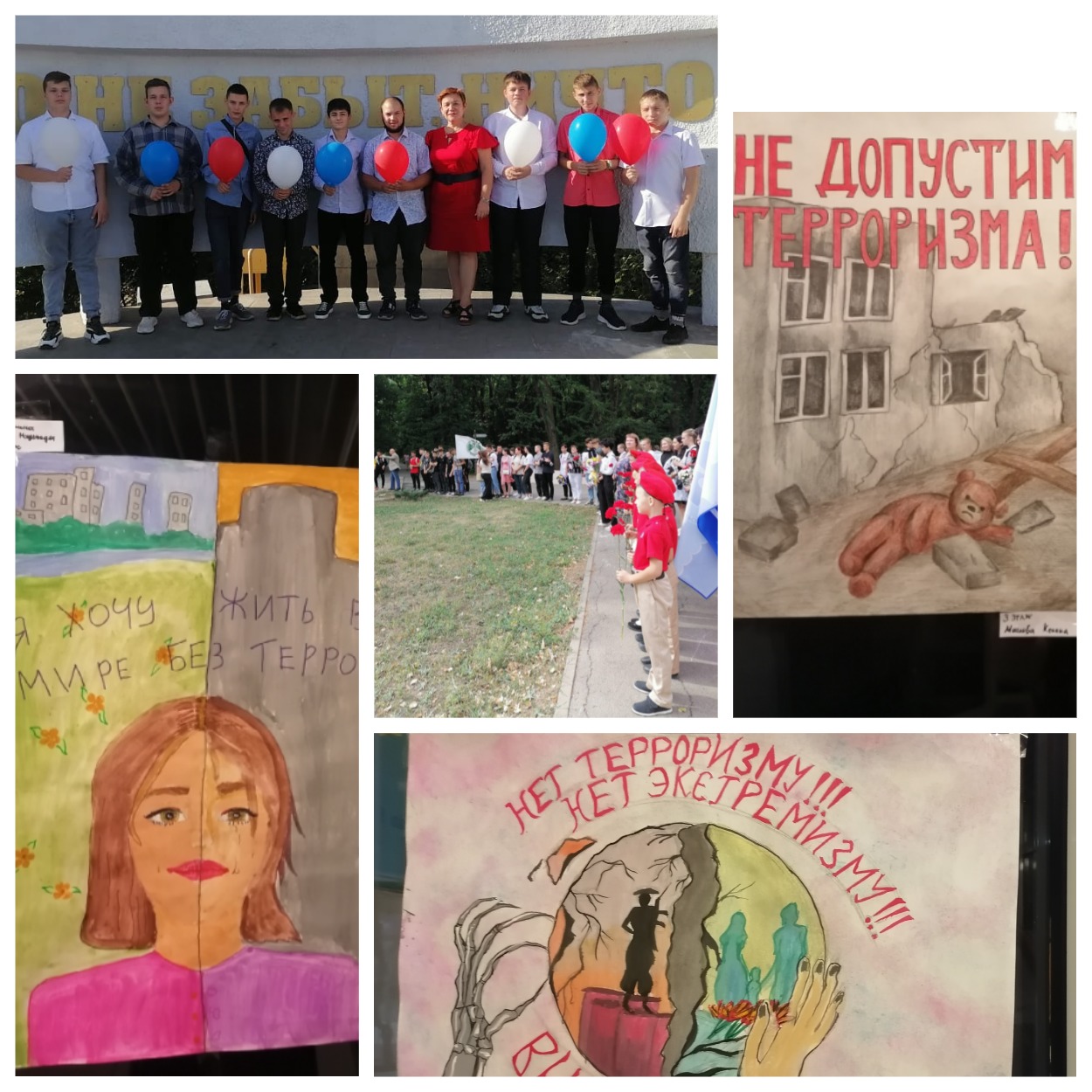 Также в общежитиях НКПТиУ провели выставку плакатов. Студенты нарисовали плакаты с надписями «Не допустим терроризма!», «Нет экстремизму!», «Я хочу жить в мире без террора».