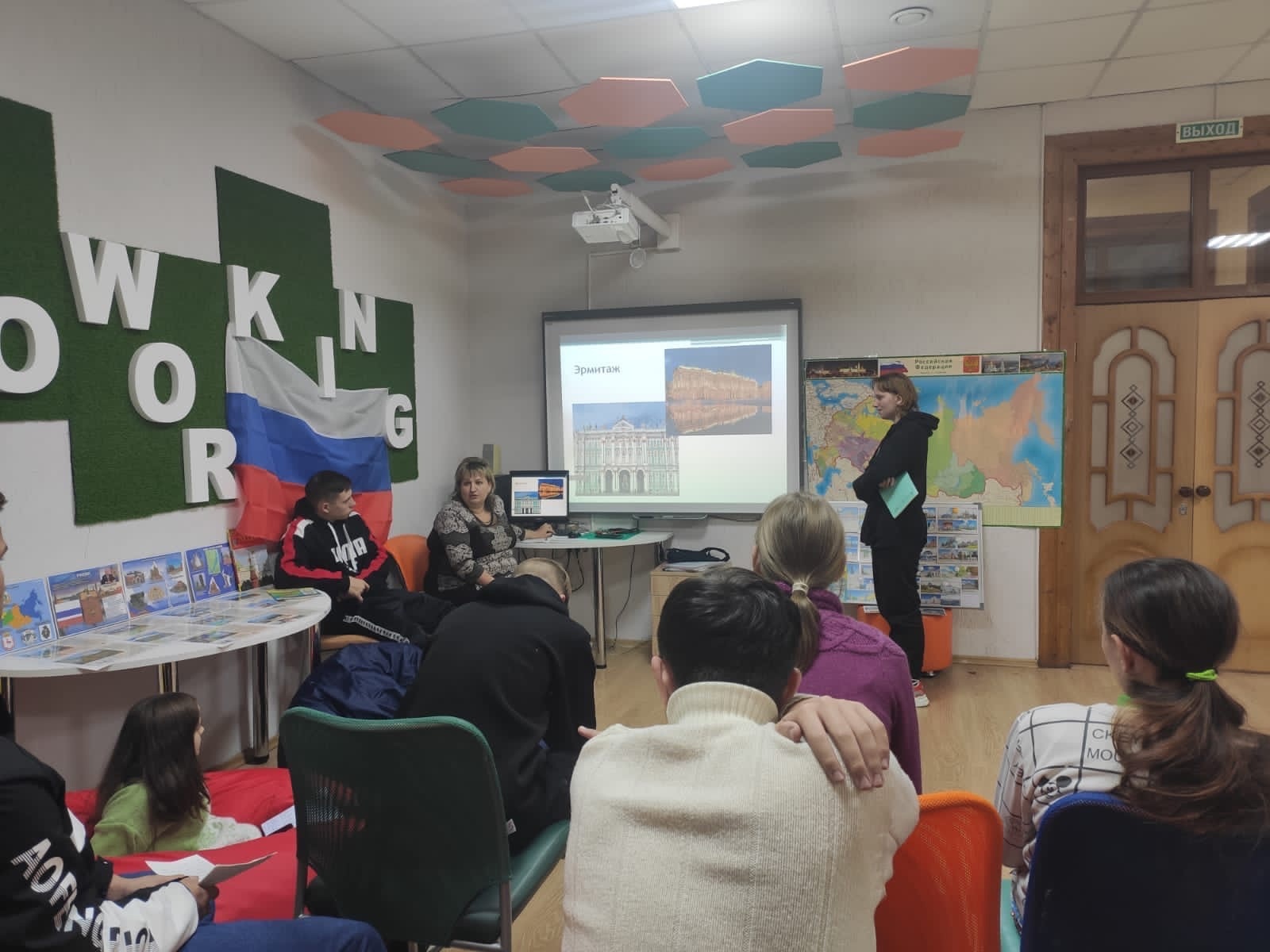 27 октября студенты групп РЗС и РКО вместе с дефектологом Натальей Захаровой провели занятие «Россия. Города и достопримечательности».