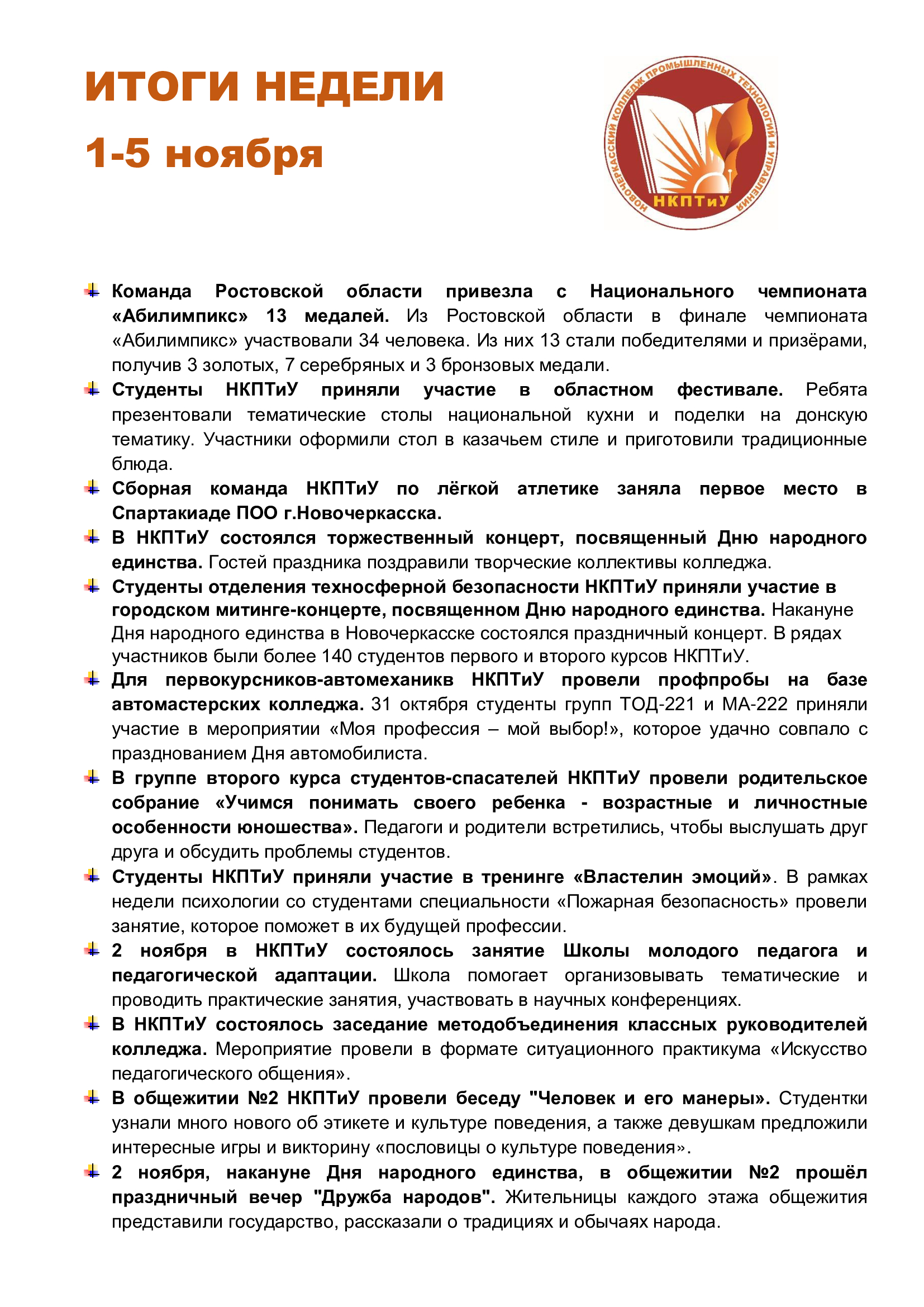 ИТОГИ НЕДЕЛИ