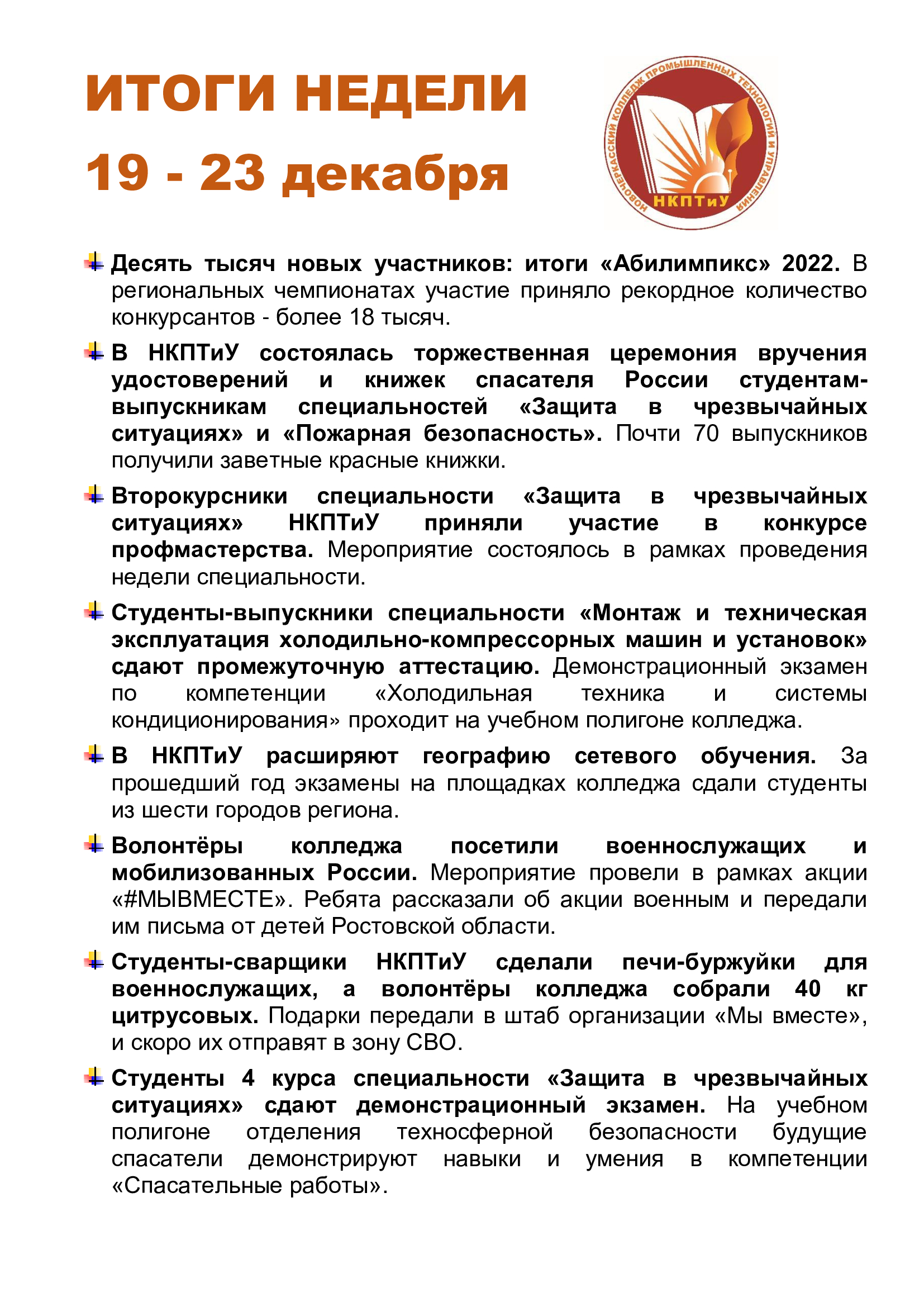 ИТОГИ НЕДЕЛИ