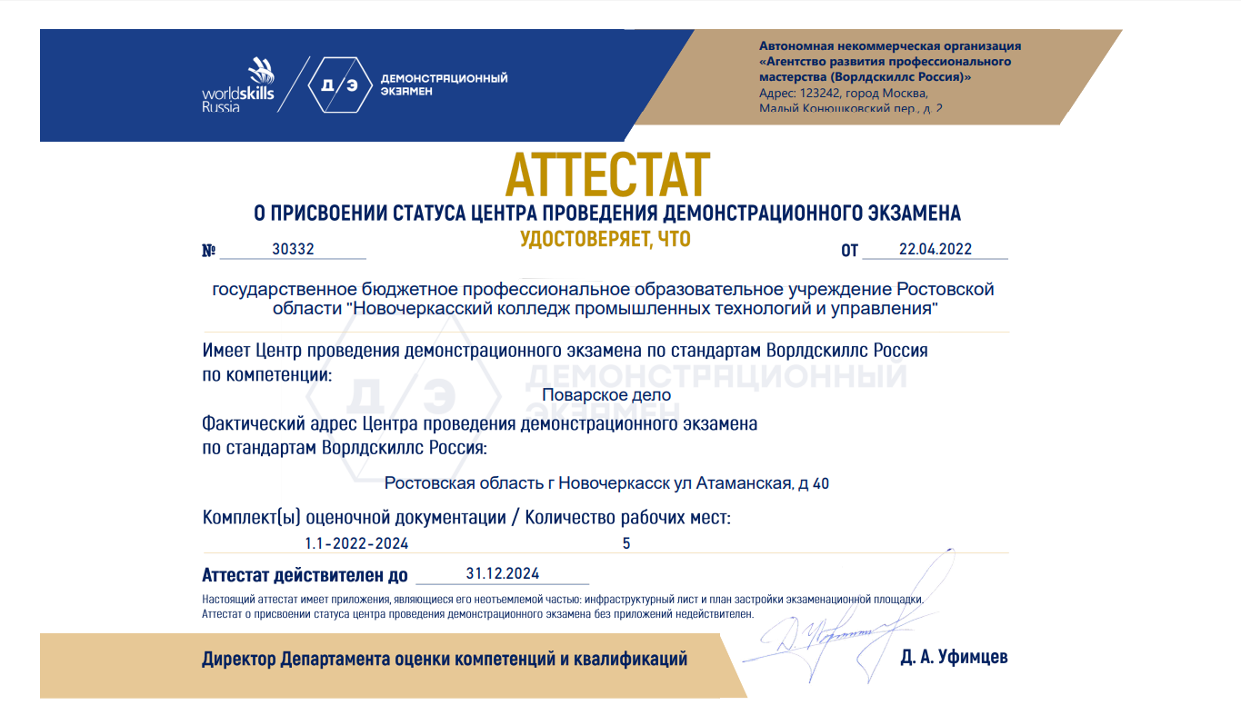 Все площадки аккредитованы по стандартам Агентства развития навыков и профессий, оснащены необходимым оборудованием и материальной базой для сдачи демонстрационных экзаменов.