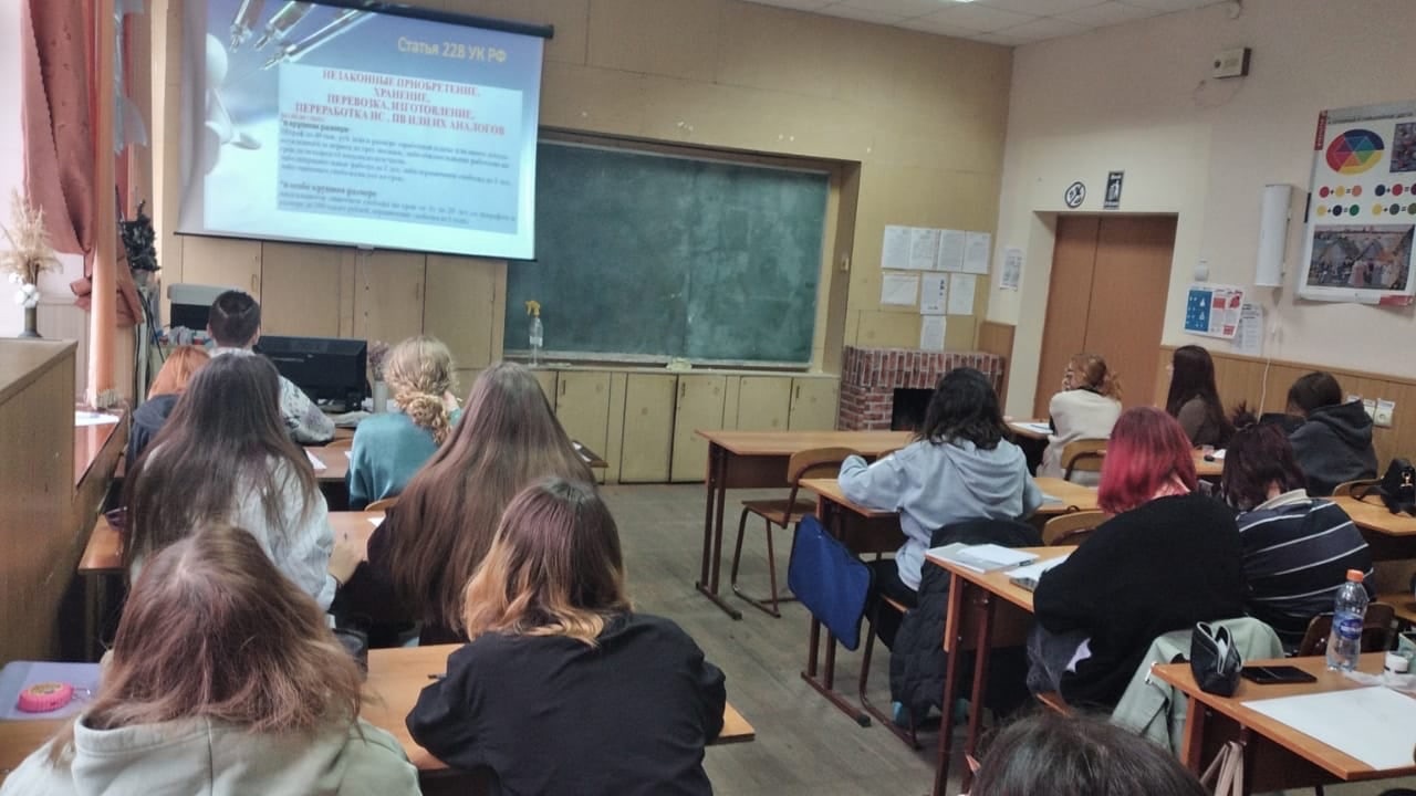 На нём ребята узнали информацию о вреде наркотиков и последствиях их применения. Также студентам рассказали об уголовной ответственности за употребление, распространение и изготовление наркотических средств.