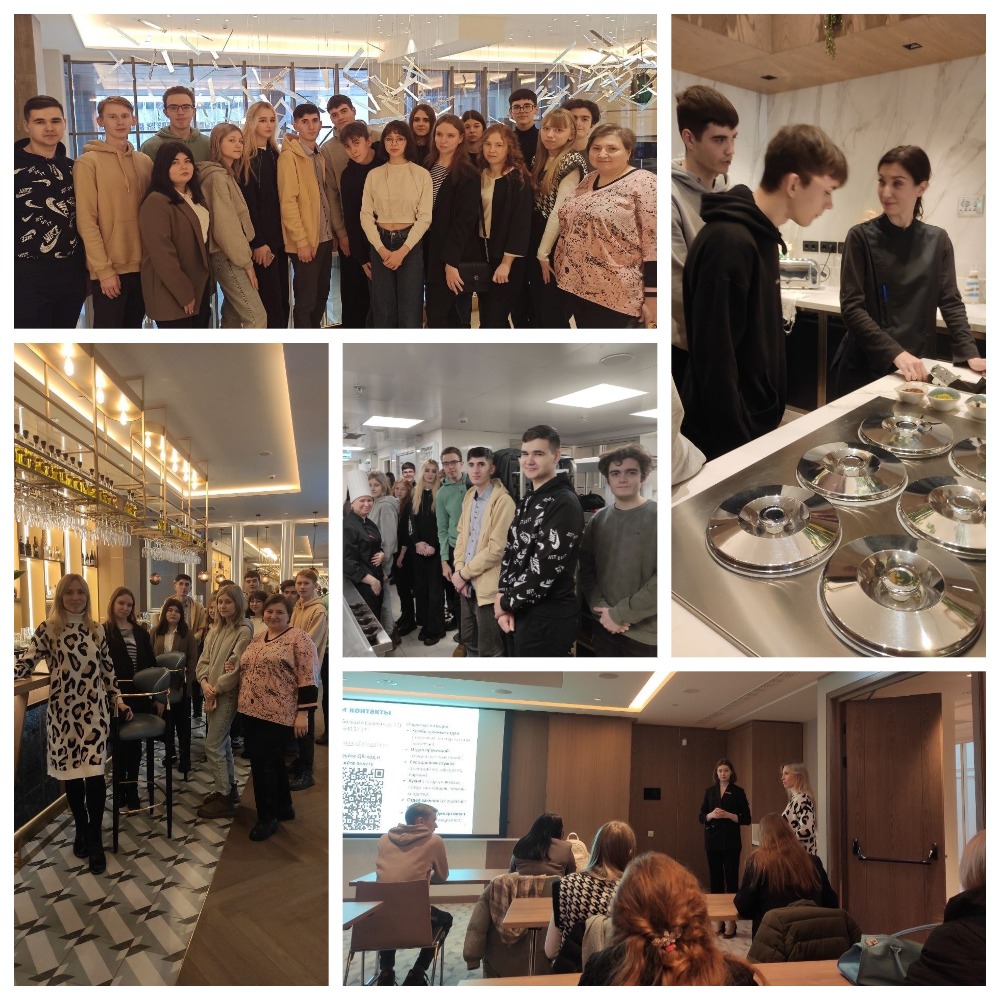 В рамках ознакомительного мероприятия студенты группы Пкд-211 под руководством преподавателей Татьяны Скоба и Анны Болдовской узнали историю сетевого отеля, познакомились с корпоративными ценностями и деятельностью ресторанов и баров при отеле. Отличным бонусом стало знакомство с составом помещений и оснащением производственного сегмента ресторанно-гостиничного комплекса.
