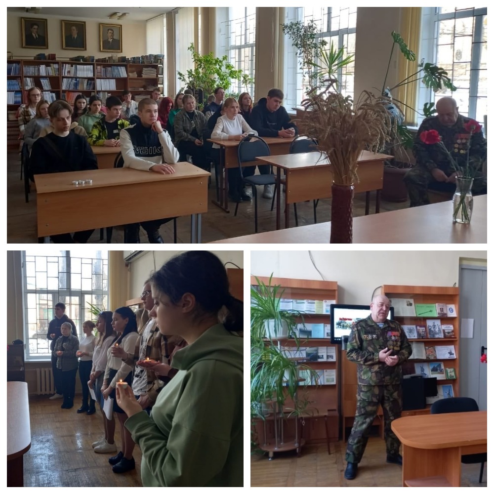 Ведущие мероприятия Анастасия Гончарова и Яна Ковалева представили студентам исторические справки о ходе боевых действий в Афганистане и Чечне. Ребята посмотрели видеоролики, послушали отрывки стихотворений и музыкальные произведения патриотического содержания. Также для студентов организовали художественную постановку «Гори, свеча».