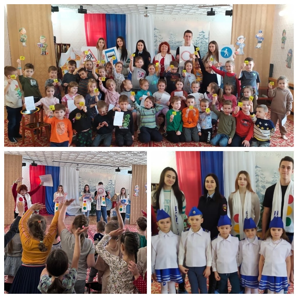 В гости к юным пешеходам пришли студенты группы Оп-191 Вячеслав Кузьменко, Анна Семенова, Олеся Нечетайленко, Римма Гаврилова и руководитель агитбригады Лариса Иванцова.