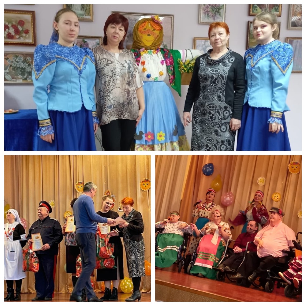 Представители колледжа оформили тематический стол в казачьем стиле, а девушки еще и нарядились в традиционные платья. После праздничного концерта, который подготовили жильцы интерната, все участники мероприятия угостились блинами.