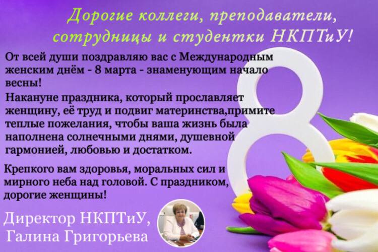 Дорогие коллеги, преподаватели, сотрудницы и студентки НКПТиУ!