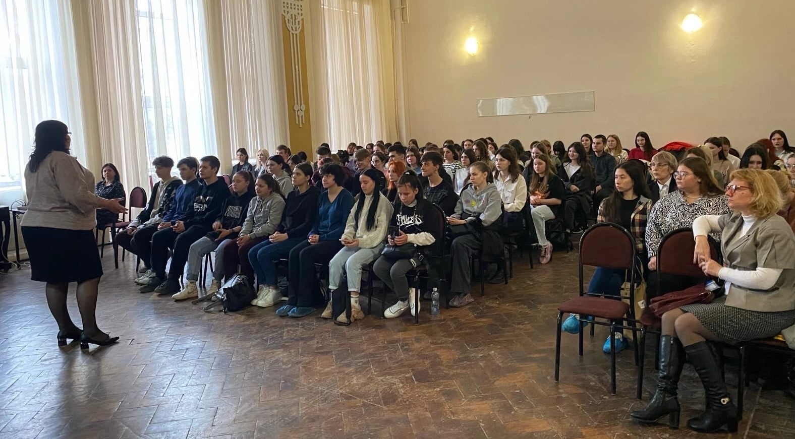 Студенты групп Бд-211, Прав-211, Прав-221 и Тов-211 рассказали первокурсникам о том, через какие испытания прошли женщины в военных и полевых госпиталях и как медсестры вытаскивали раненых с поля боя. Ребята узнали истории жизни медиков-героев Советского Союза и почтили память павших.