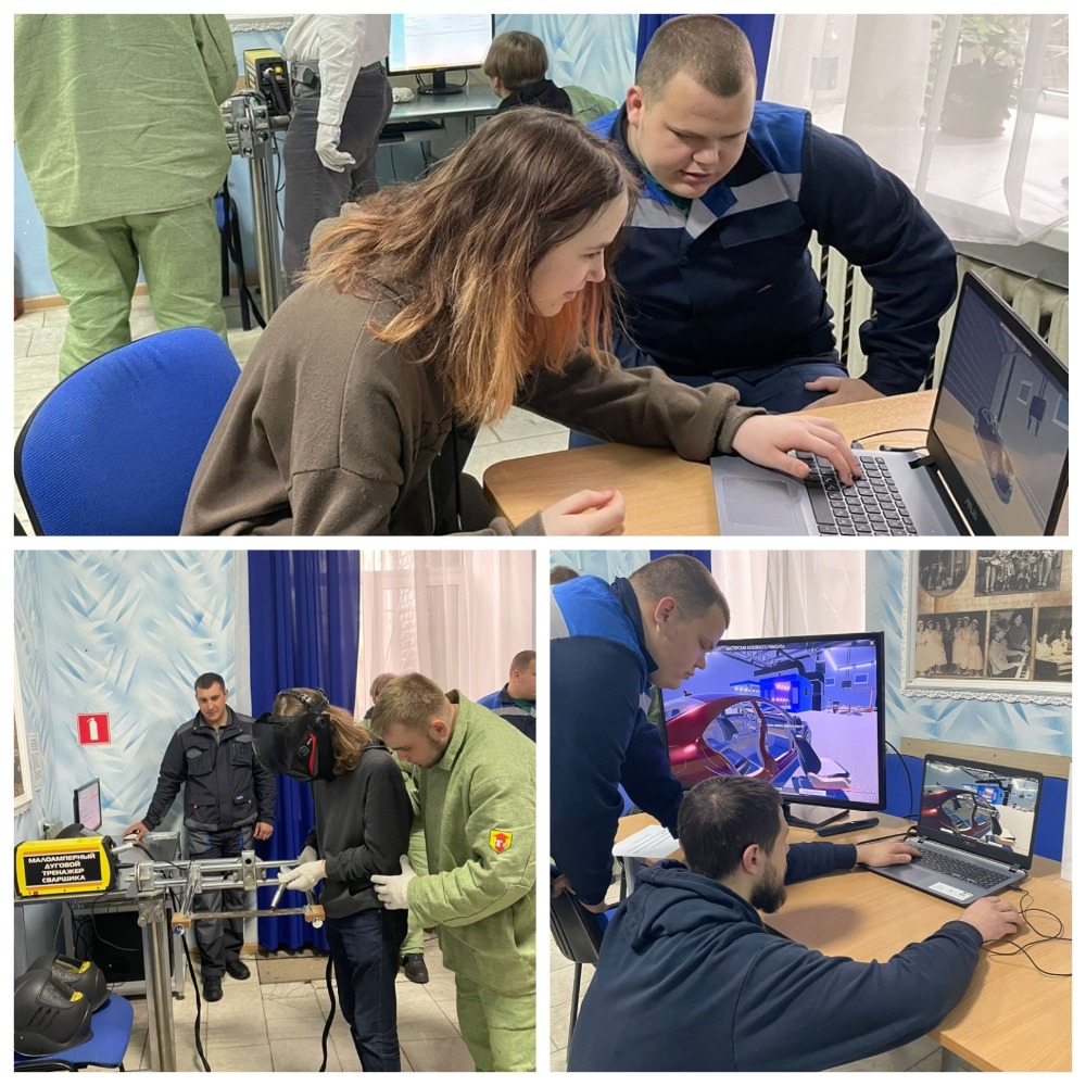 Ребят из групп Нс-201 и Нс-191 показали мастер-класс по сварке, а автомеханики-третьекурсники продемонстрировали ремонт кузова автомобиля через виртуальный тренажёр.
