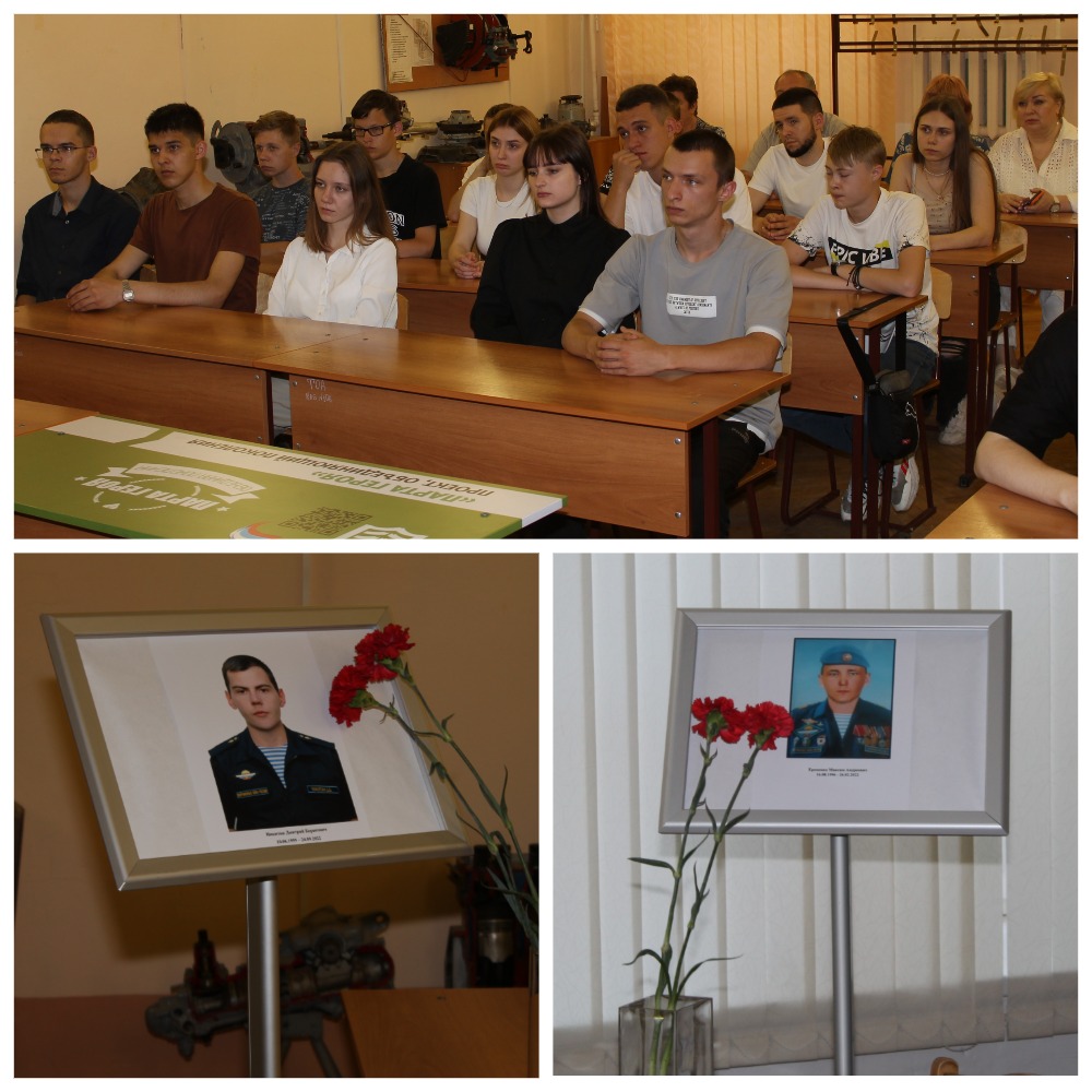 В Новочеркасском колледже промышленных технологий и управления открыли три «Парты Героя» в память о выпускниках Дмитрии Никитине, Максиме Еременко и Александре Чугаеве.