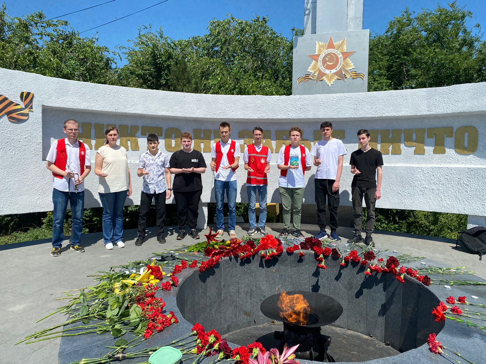 У Вечного огня мемориального комплекса Кургана Славы вместе с преподавателями они зажгли свечи и возложили цветы к памятнику.
