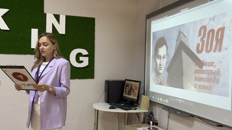 Вместе с советником по воспитанию Еленой Зайцевой ребята посмотрели документальный фильм о подвиге Зои Космодемьянской.