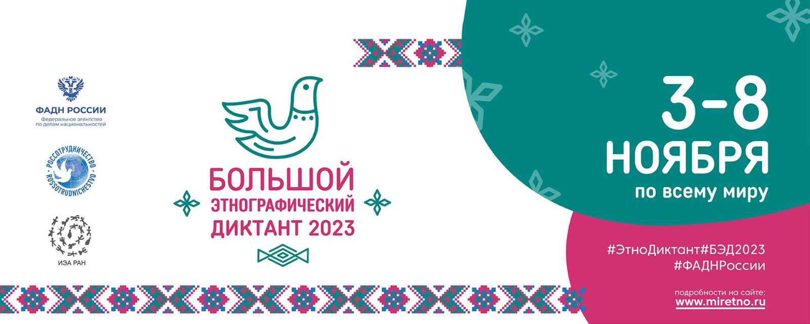 Задания будут опубликованы 3 ноября на официальном сайте Большого этнографического диктанта miretno.ru.