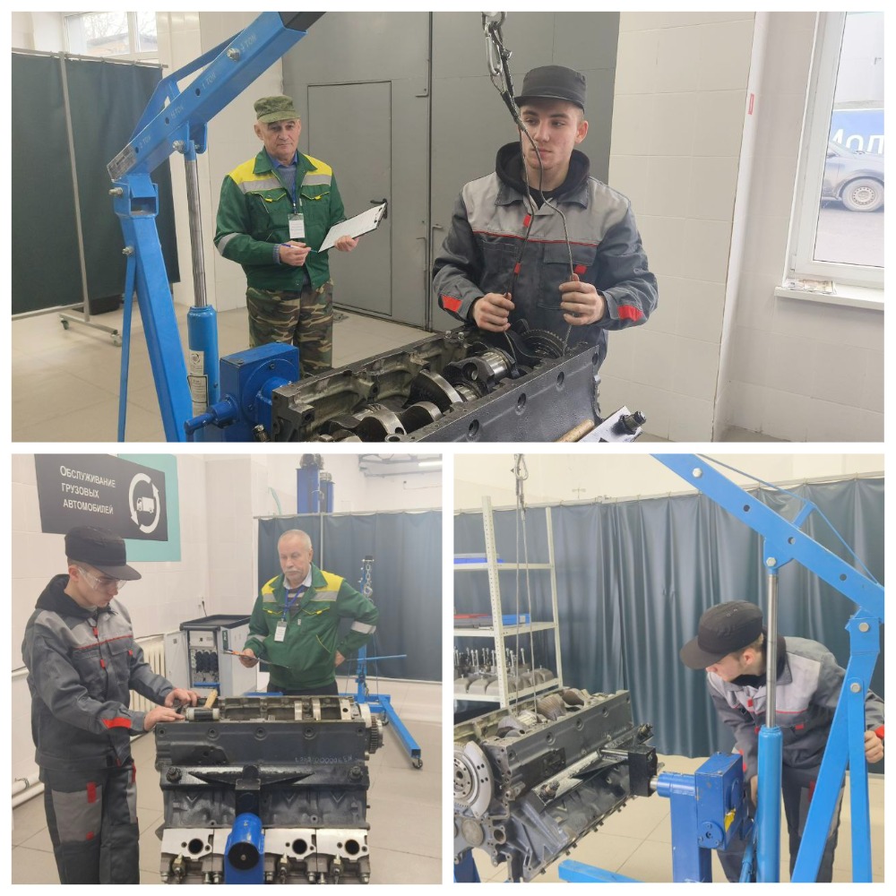 Здесь экзаменуемые выполняли дефектовку двигателя автомобиля и выявляли неисправности.