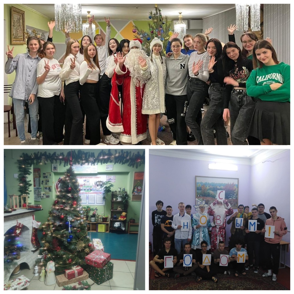 А в общежитии №4 ребята подготовили душевное поздравление для всех студентов и сотрудников колледжа. Студенты вместе с воспитателями по новогоднему украсили фойе и коридоры общежитий, наполнили праздничным уютом!