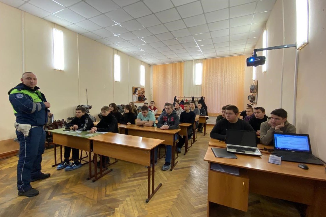 Инспектор рассказал обучающимся о недопустимости управления транспортными средствами несовершеннолетними, напомнил о ПДД для пешеходов и привёл статистику ДТП.