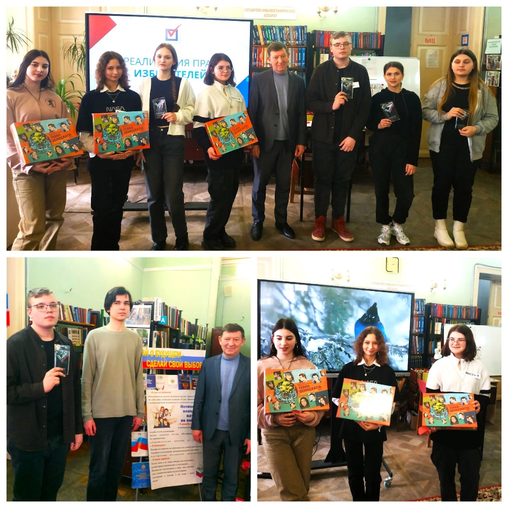 Затем студенты поучаствовали в правовой игре «Знатоки избирательного права». Юноши и девушки, принявшие активное участие в викторине, конкурсе ораторов и блиц опросе, получили в подарок настольную образовательную игру «Terra Democratia. Земля демократии» и другие призы от председателя территориальной избирательной комиссии.