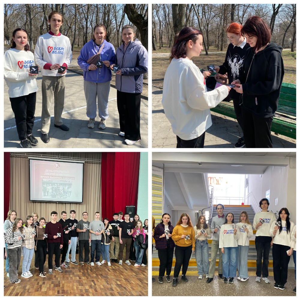 28 марта на улицах Новочеркасска и в стенах колледжа ребята провели одиночные пикеты, где раздавали жителям и студентам наклейки с черно-белым изображением журавлей с подписью «Крокус 22.03.2024».