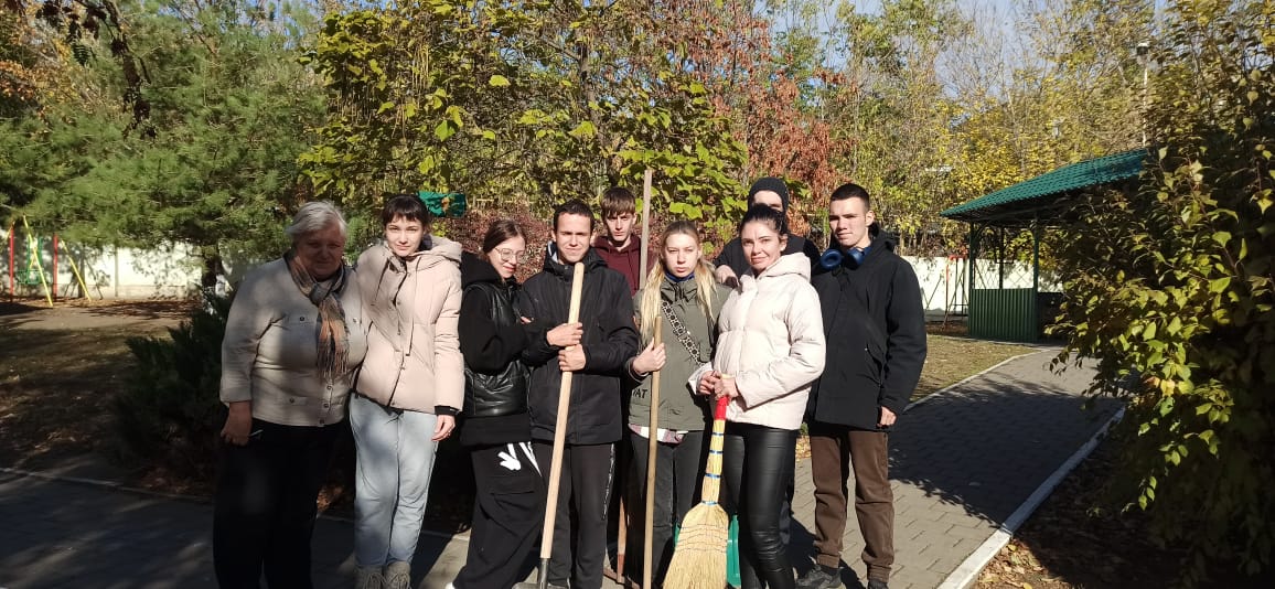 Ребята со всей ответственностью отнеслись к труду, чистоте и коллективной работе. Дружно, весело и с большим интересом студенты очистили территорию детского сада от опавших листьев, удалили сорняки, привели в порядок газон. Каждый внес частичку своего тепла и труда.
