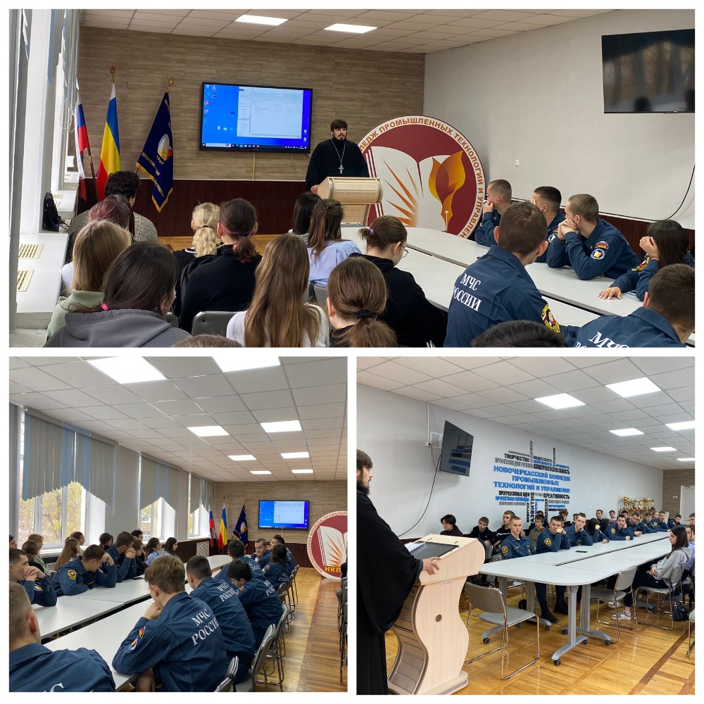 В рамках ежегодного общественно-церковного форума Донского края, посвященного 80-летию Великой Победы, в Новочеркасском колледже промышленных технологий и управления состоялась лекция на тему «Донское казачество в годы Великой Отечественной войны». В мероприятии приняли участие клирик собора иерей Сергий и руководитель экскурсионно-паломнической службы Ольга Жемейцева.