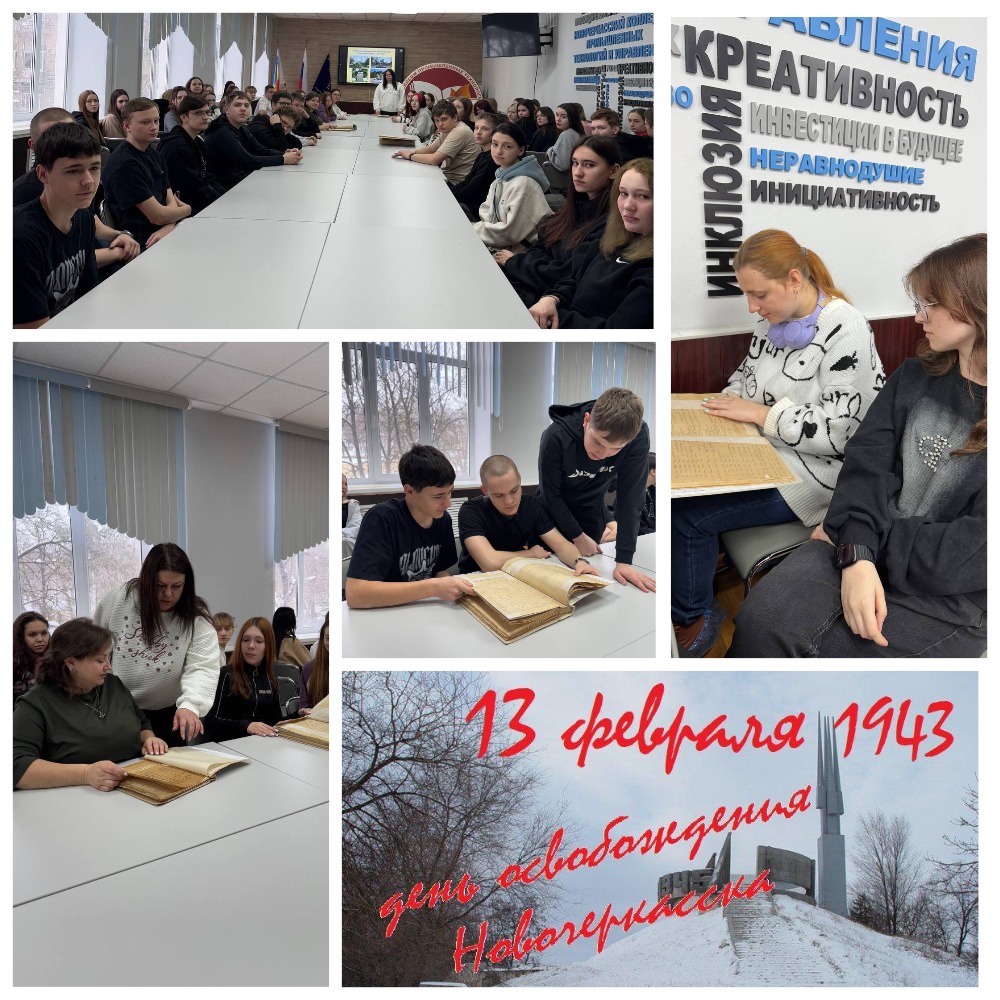 В колледже под руководством преподавателя Ирины Киреевой состоялось значимое мероприятие, посвященное 82-й годовщине освобождения Новочеркасска от немецко-фашистских захватчиков. Это событие собрало студентов, которые с интересом слушали представителей Новочеркасского филиала государственного архива Ростовской области — архивистов Светлану Трофименко и Ольгу Зернову.