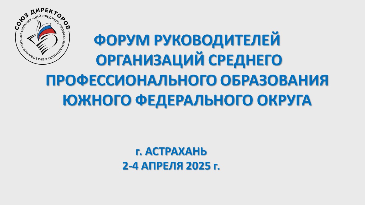 2-4 апреля 2025 года в Астрахани состоится Форум руководителей профессиональных образовательных организаций Южного Федерального округа.