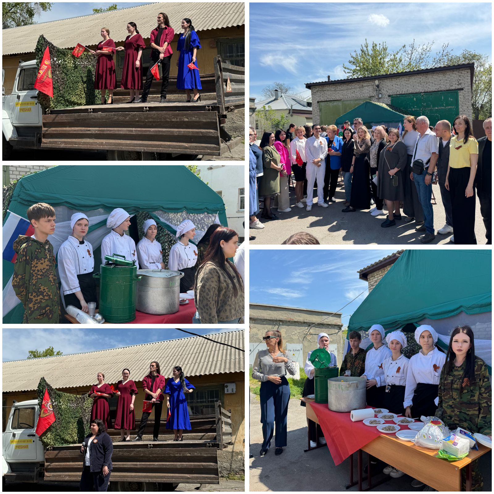 Студентам раздавали кашу по рецептам военных лет, а также мероприятие сопровождалось песнями посвященные Дню Победы, создавая атмосферу памяти и уважения к истории.