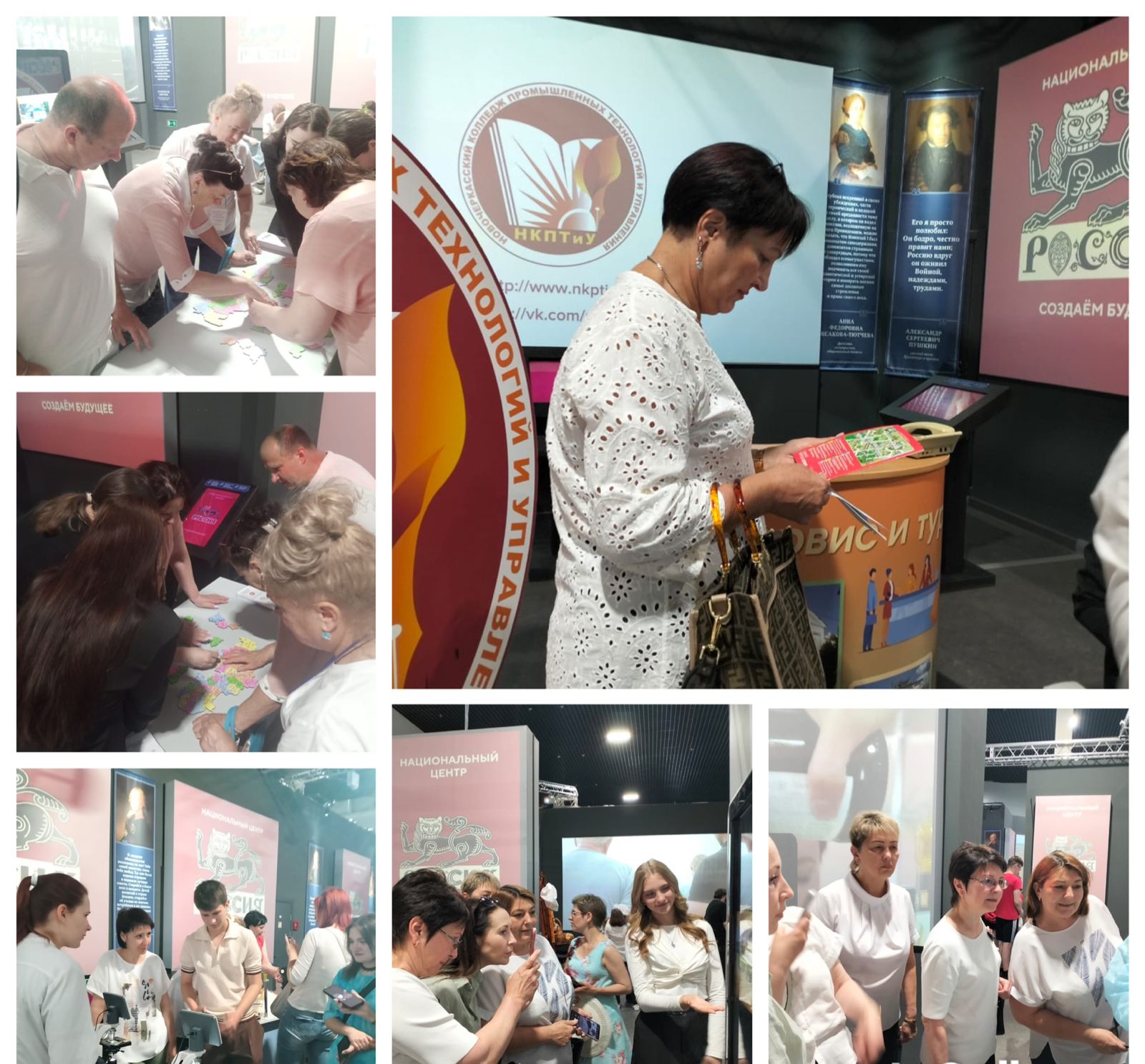 Преподаватели и студенты Новочеркасского колледжа промышленных технологий и управления под руководством заведующего отделом профориентации и содействия трудоустройства Донсковой Ольги и специалиста отдела профориентации Авраменко Александра приняли участие в выставке, проходившей в г. Ростов-на-Дону в мультимедийном музее “Россия — моя история”.