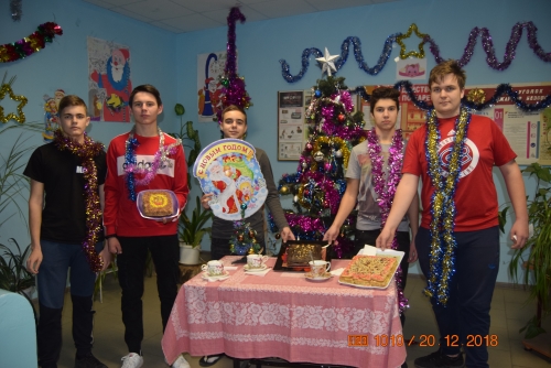 20 декабря 2018 года большой дружной семьей вместе с воспитателем Панариной В. В. в общежитии №1 был организован и проведён комплекс Новогодних мероприятий. Ребята украсили новогодней символикой комнаты и фойе общежития, с любовью и фантазией нарисовали красочные плакаты, посвященные Новому 2019 году, году Желтой Земляной Свиньи, подготовили музыкальные номера и конкурсы. Но, пожалуй, самым интересным стал кулинарный поединок, прошедший под девизом «Поваров умелые руки могут чудо сотворить!». На новогодний праздник в общежитие были приглашены зам. директора по воспитательной работе Колот С. В. и зав. отдела ВР Власова О. П. Ребята угощали гостей тортами, с любовью приготовленными собственными руками. Первое место членами жюри единогласно было присуждено Стрельник Дмитрию - студенту группы ТП-151 за его чудесный торт «Зимняя фантазия». Второе место занял студент группы ТП-171 Попов Данил со своим тортом «Иней». За развитие творческой самореализации в приготовлении оригинального торта «Смайлик» третье место было отдано студенту группы МХ-181 Стрельцову Валентину.