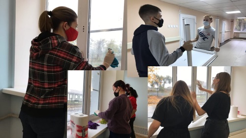 В условиях складывающейся эпидемиологической ситуации в связи с увеличением роста больных новой короновирусной инфекцией и необхо-димостью открытия дополнительного госпиталя, ребятаНовочеркасского колледжа промышленных технологий и управления не остаются равно-душными и готовы к оказанию социально-значимой помощи в любой мо-мент. Так 31.10.2020 года студенты нашего коллежа, соблюдая все меры собственной безопасности и безопасности окружающих,приняли участие в подготовке помещений госпиталя для больных COVID-19 в городе Ново-черкасске по ул. Мацоты, 28. Основными видами работ явились: оклеива-ние окон плёнкой, мытьё полов. Отметим, что оказание любой помощи в такой ситуации бесценно и способствует сплочению людей и делает их сильнее!