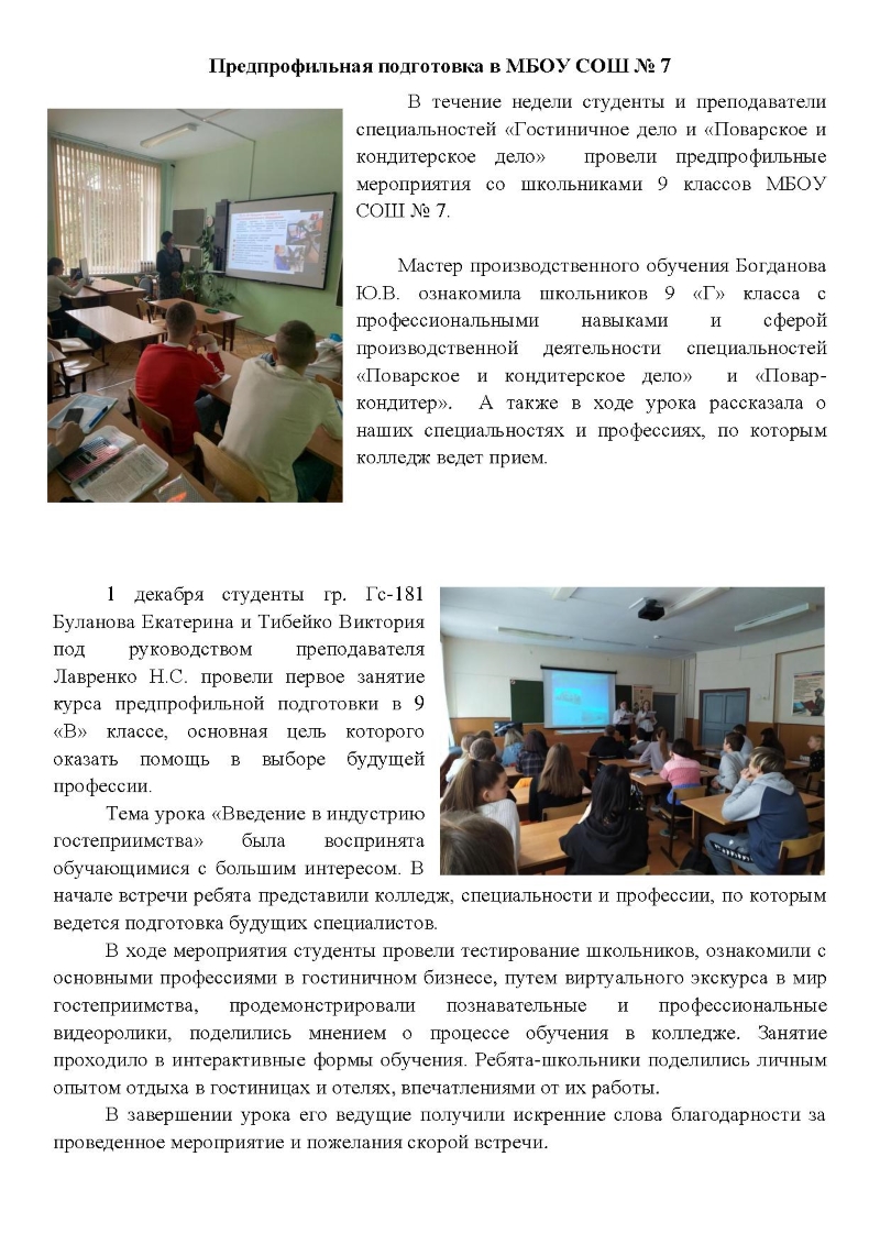 Предпрофильная подготовка в МБОУ СОШ № 7