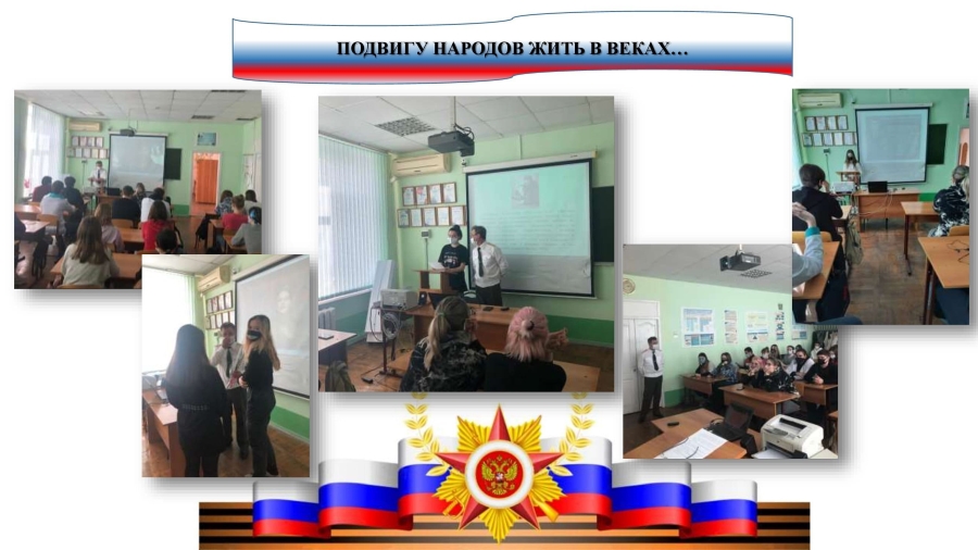 18 февраля 2021 года в группах Агротехнического отделения Вет-201 (классный руководитель Надькин В.Н.) и Вет-203 (классный руководитель Мишустин В.А.) в рамках месячника военно-патриотической работы был проведён тематический классный час «Подвигу народов жить в веках…». В ходе классного часа студентам была предоставлена информация о героях Великой Отечественной войны, Чеченской войны, боевых действиях в Сирии. Не были забыты и герои мирного времени. Полковник, ветеран боевых действий в Чеченской республике Надькин В.Н. рассказал о событиях войны в Чечне. Завершился классный час просмотром героических фрагментов из советского художественного фильма «Офицеры».