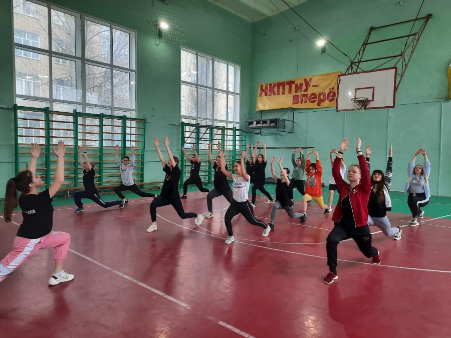 Преподаватели физической культуры рассказали обучающимся колледжа о том, что спорт — это неотъемлемая часть здорового образа жизни, им занимаются ради собственного удовольствия и ради пользы для здоровья. После прослушанной лекции ребята с большим удовольствием прияли участие в музыкальной флешмоб-зарядке.