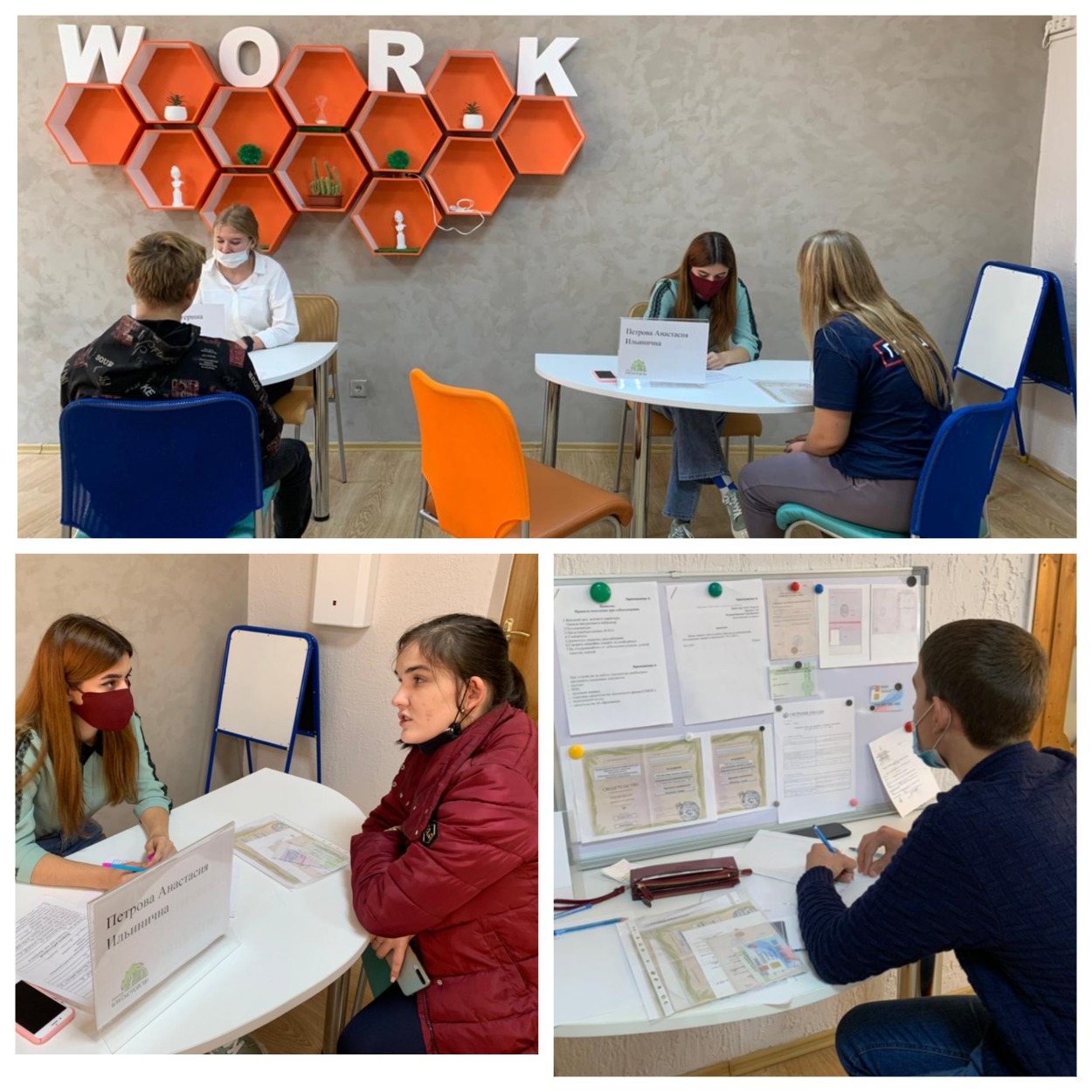 Помощниками выступили волонтёры НКПТиУ. Они сыграли роли работодателей в разных компаниях: двух строительных и одной озеленительной.