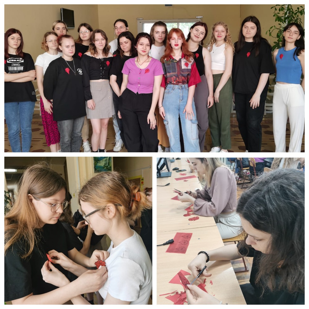 22 июня в учебном корпусе № 4 с утра кипела творческая совместная работа. Студенты, члены российского движения детей и молодёжи «Движение первых» и волонтеры своими руками изготовили красные гвоздики и вручили их педагогам, студентам и жителям города.