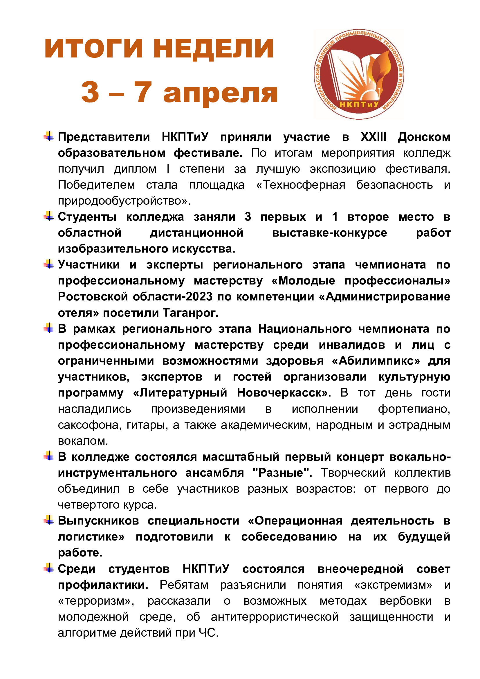 10.04.2023 ИТОГИ НЕДЕЛИ