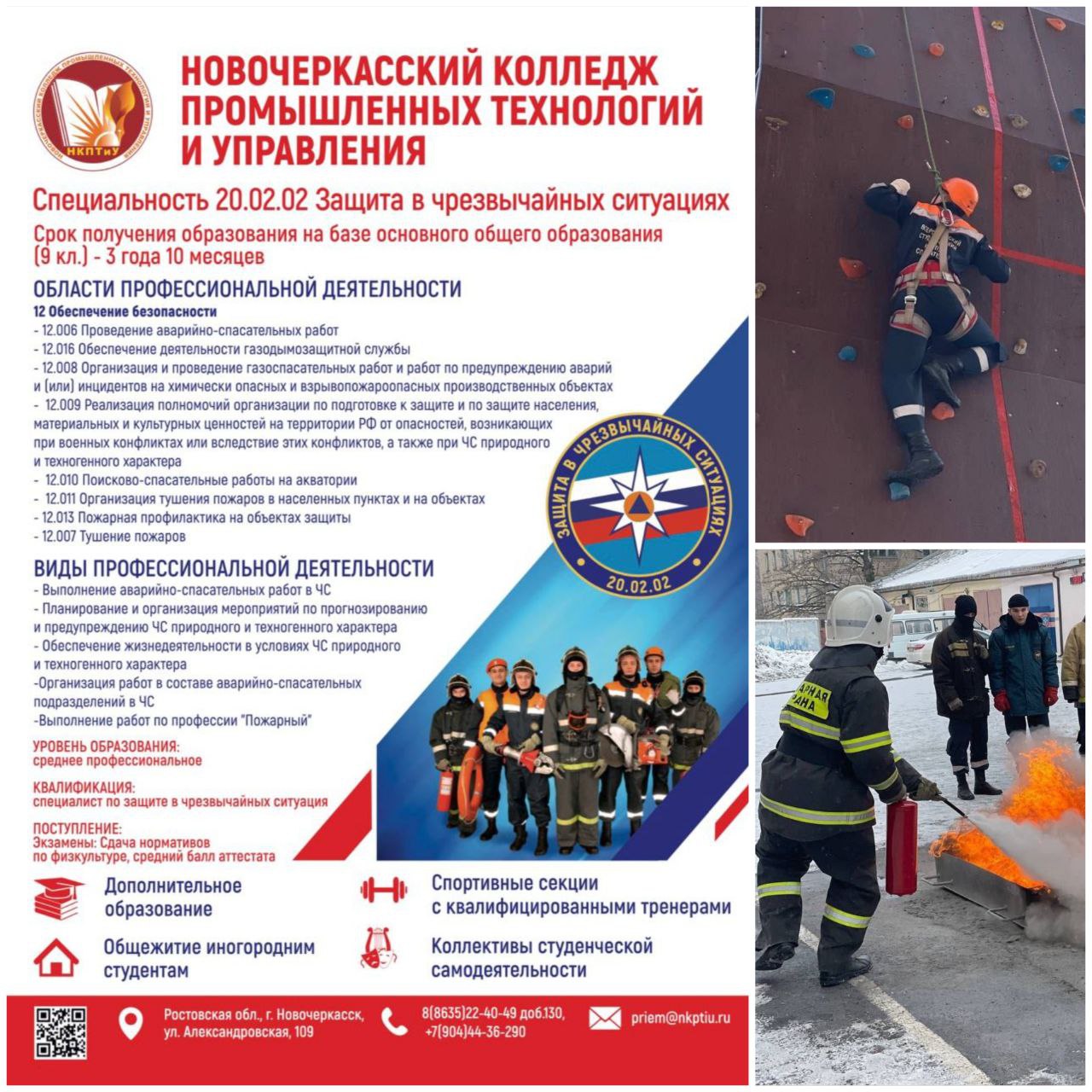 Новочеркасский колледж промышленных технологий и управления ведет набор абитуриентов по специальности 20.02.02 Защита в чрезвычайных ситуациях (квалификация - специалист по защите в чрезвычайных ситуациях).