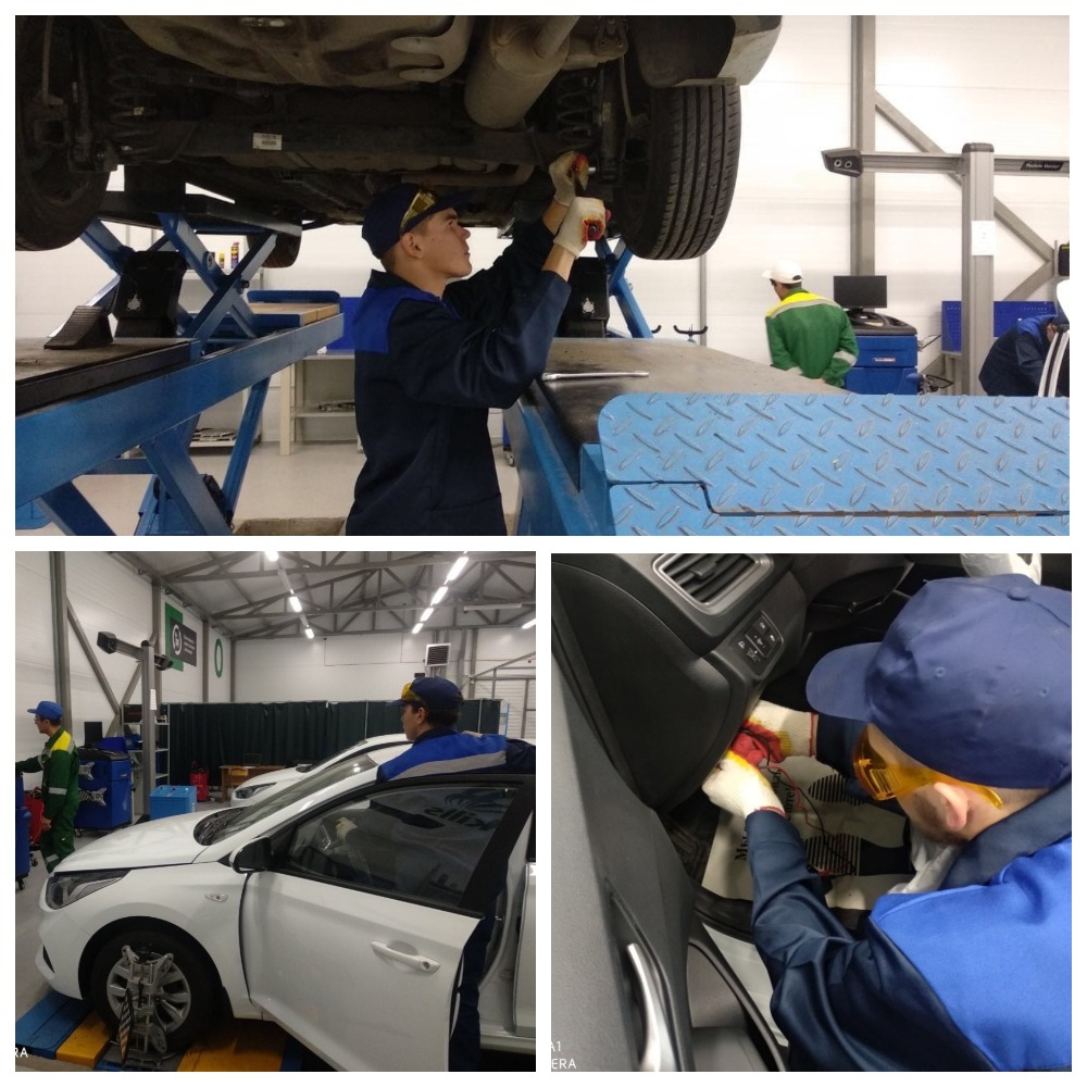 В автомастерских НКПТиУ находится новейшее оборудование. Всё выстроено таким образом, чтобы создать полное погружение в профессию. Здесь студенты показывают то, чему они научились в колледже. Всего в демоэкзамене три модуля: