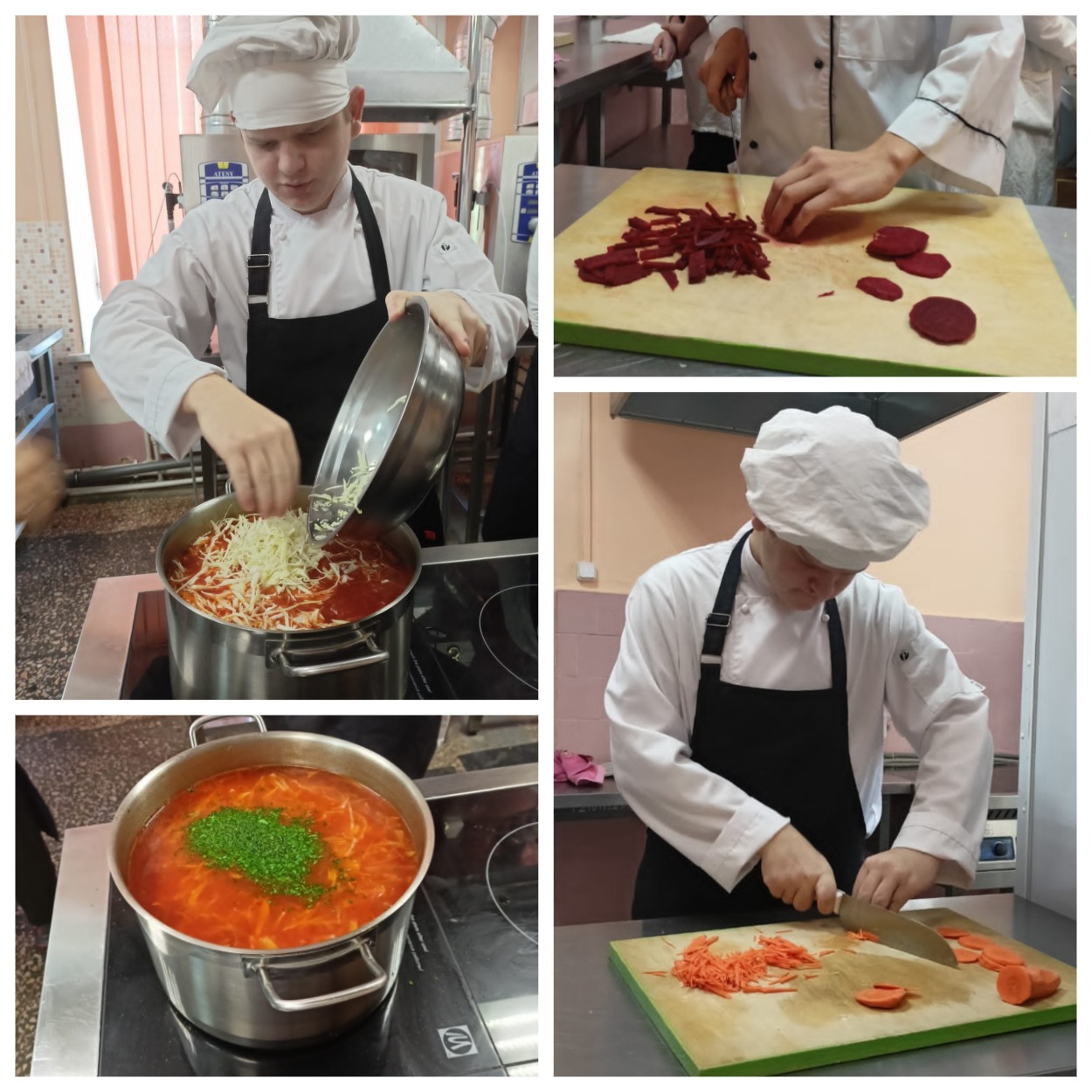 В этот раз ребята приготовили одно из самых популярных блюд – борщ. Процесс проходил под руководством мастера производственного обучения Павла Посыпкина.