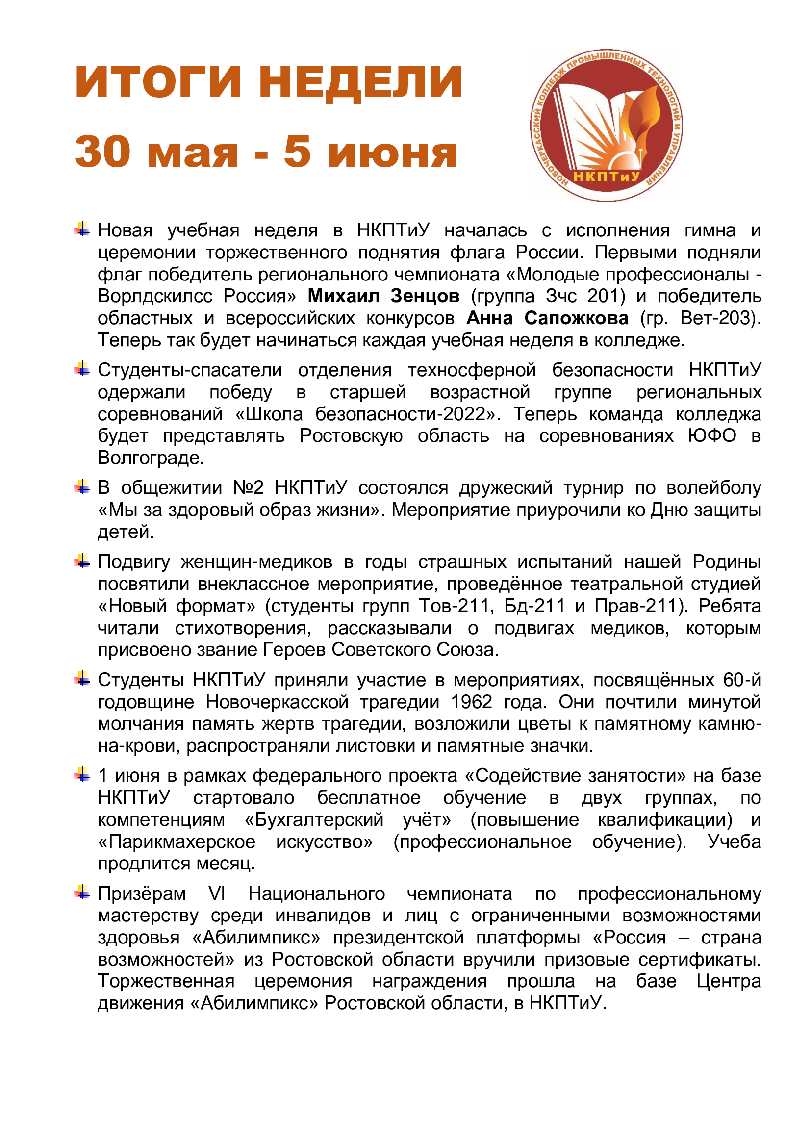 05.06.2022 ИТОГИ НЕДЕЛИ