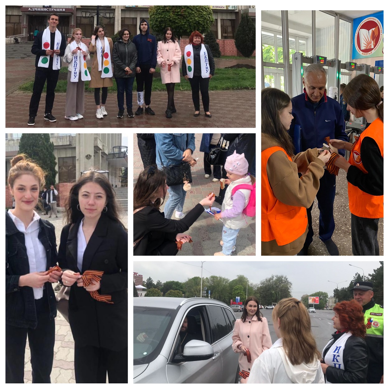 5 мая студенты НКПТиУ вновь появились на центральных улицах города В рамках всероссийской акции «Георгиевская ленточка», посвященной 77-летию Победы в Великой Отечественной войне, агитбригада «Дорожный патруль» (рук. Лариса Иванцова) совместно с сотрудниками отдела ГИБДД Межмуниципального управления МВД России «Новочеркасское» раздавали символ Дня Победы автомобилистам.